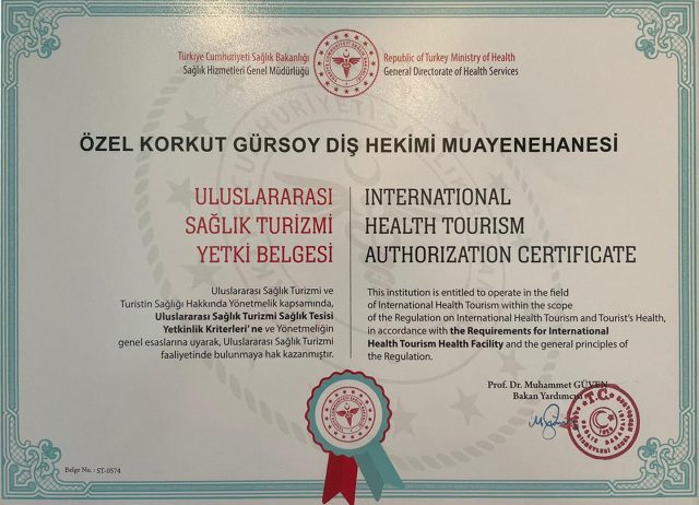 Vår klinikk har mottatt ett internasjonalt helseturismesertifikat utstedt av det Tyrkiske Helsedepartementet.